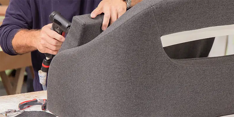 Pour garantir un confort optimal et une maîtrise complète de notre métier, nous avons fait le choix d’intégrer la sélection, la coupe et le travail sur mesure de la mousse et du bois au sein-même de notre atelier.